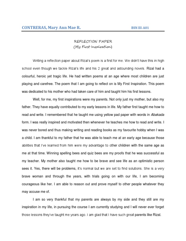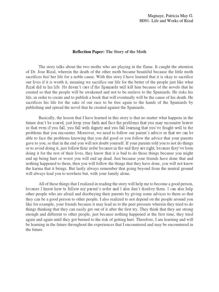 The Life And Works Of Rizal Reflection Paper Pdf